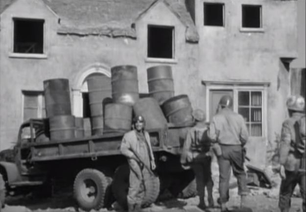 D-Day…and its aftermath of scattered tanks, crews, and infantry. After footage